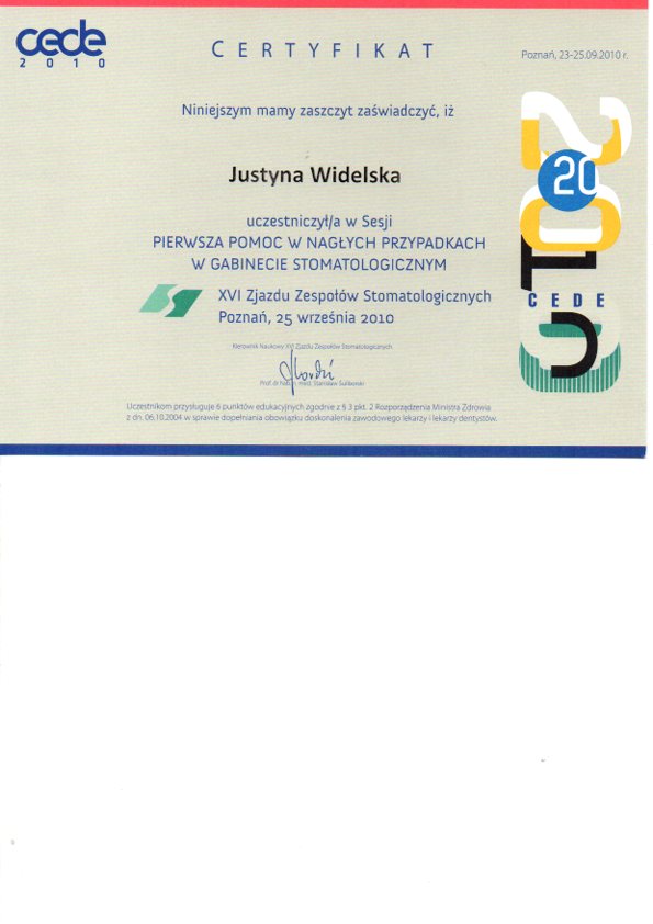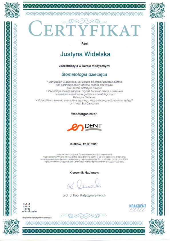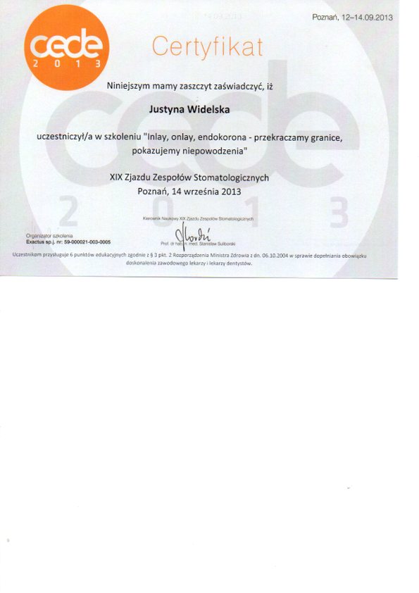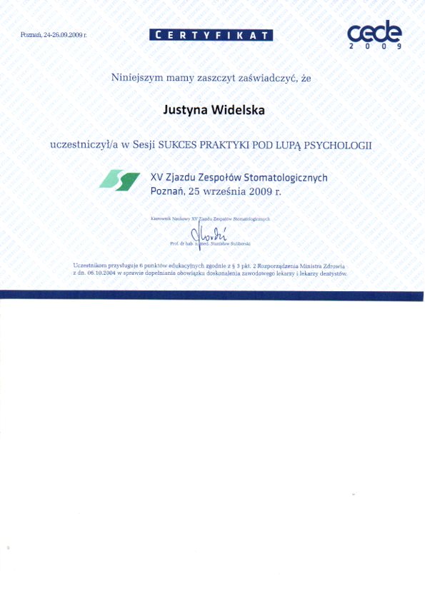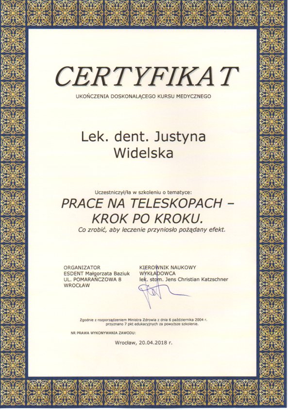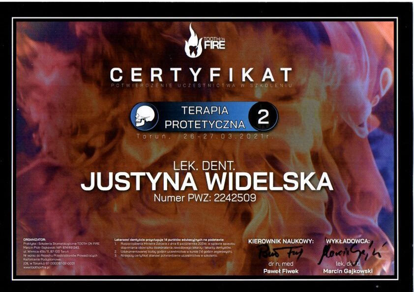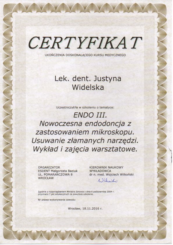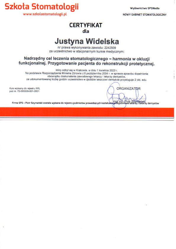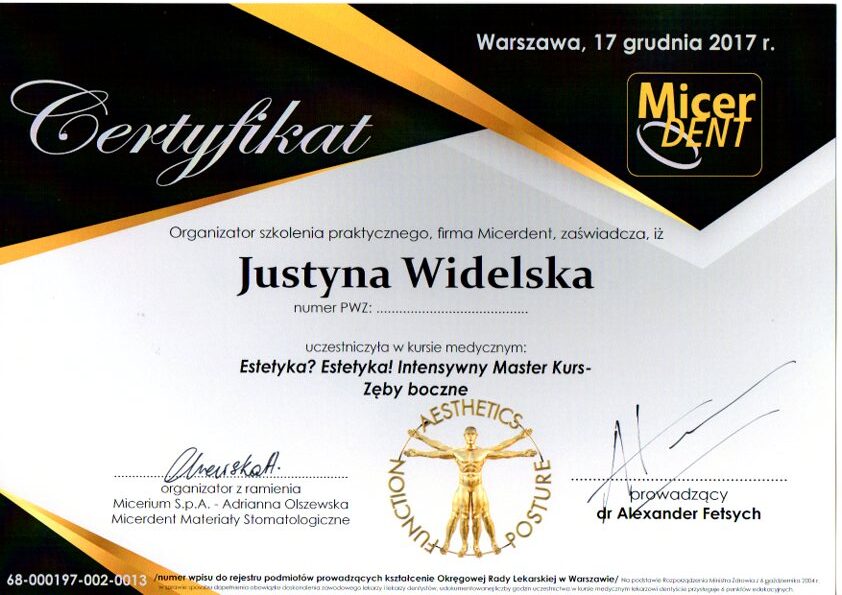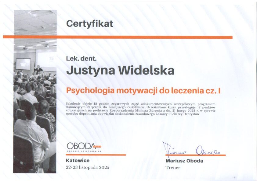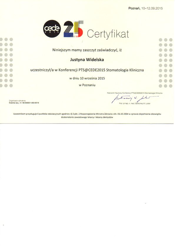Ukończyłam studia na Wydziale Stomatologii Pomorskiej Akademii Medycznej w Szczecinie w 2006 roku. Moją pasją zawodową jest stomatologia mikroskopowa, endodoncja i protetyka. Głównym obszarem moich zainteresowań jest protetyka z wykorzystaniem skanera wewnątrzustnego oraz estetyczne odbudowy zębów w odcinku przednim. W pracy z pacjentem najbardziej cenię sobie dokładność oraz komfort pacjenta. Swoje umiejętności systematycznie poszerzam biorąc udział w licznych sympozjach naukowych i kursach praktycznych.